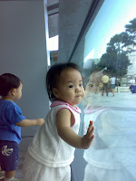 Thanks to Auntie Pauline for organising this trial class for us.I can't really remember all the details but shall try my best. There were 9 babies in the class. It's a 1hr 30min class. Teacher Ereen & Teacher Fairuz is in charge of the class. The 1st 10mins is Free play followed by Clean-up time & a welcome song for the babies. During the story telling, Celest, as usual, was roaming around, playing with the blackboard, markers etc. She loved sitting on the little chair in the classroom.